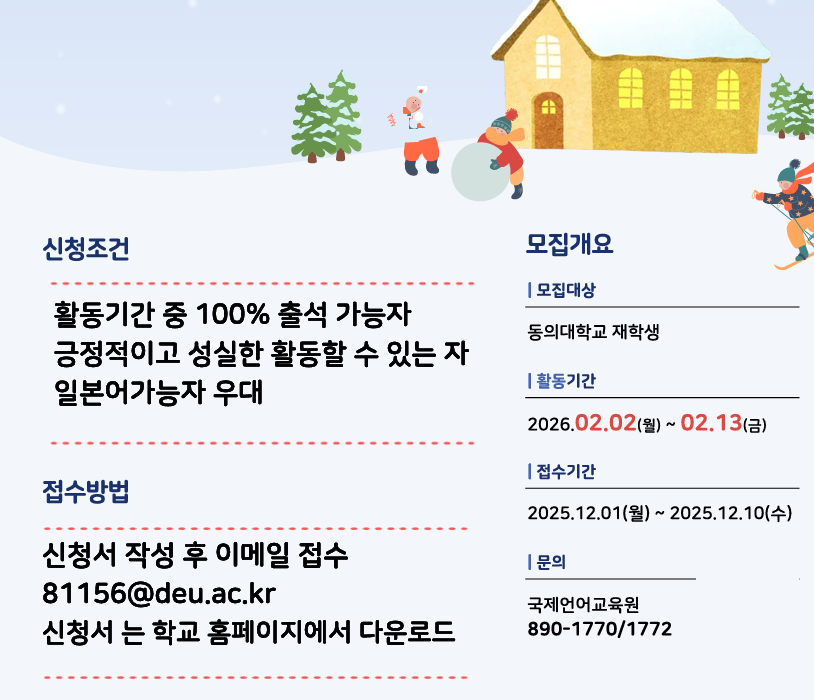 2025학년도 동계 일본 자매대학 한국어 튜터 모집